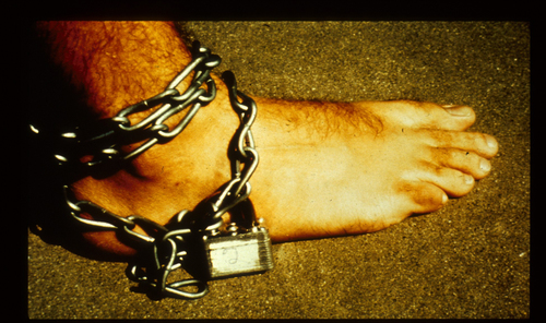 Ingresso in carcere – Ai detenuti bendati venne ordinato di “spogliarsi e rimanere nudi con le braccia tese, le mani appoggiate al muro e le gambe divaricate. Restano a lungo in quella scomoda posizione, mentre le guardie li ignorano … Prima che gli sia consegnata l’uniforme, ogni detenuto viene spruzzato con una polvere, che dovrebbe essere un antiparassitario, allo scopo di distruggere i pidocchi che potrebbero essere introdotti nel carcere e infestarlo. Senza alcun incoraggiamento da parte dello staff, alcune guardie incominciarono a fare battute sui genitali dei detenuti … A ogni detenuto, ancora bendato, viene consegnata l’uniforme … una specie di grembiule di colore marroncino, con il numero di matricola cucito sul petto e sulla schiena … Una calza di nylon funge da berretto per coprire i capelli … Sostituisce la rasatura della testa che fa parte del rituale riservato ai nuovi arrivati nell’esercito e in alcuni penitenziari. Inoltre, coprire la testa è un sistema per cancellare uno dei segni di individualità e favorire l’anonimato entro la casta dei detenuti. Poi, ogni detenuto indossa un paio di sandali di gomma, e gli viene agganciata alla caviglia una catena chiusa con un lucchetto, costante memento della detenzione. Ricorderà la sua condizione anche mentre dorme, quando la catena gli batte sul piede e si rigira nel sonno. Ai detenuti non è concesso indossare la biancheria … Quando i detenuti si sono completamente rivestiti, le guardie tolgono loro la benda in modo che possano vedersi, nel loro nuovo abbigliamento, in uno specchio a tutta altezza appoggiato alla parete. Una fotografia scattata con una polaroid documenta la loro identità su un modulo ufficiale di registrazione dove il ‘Nome’ è sostituito da un numero di matricola. L’umiliazione di essere un detenuto è incominciata …” (pp. 57-58).