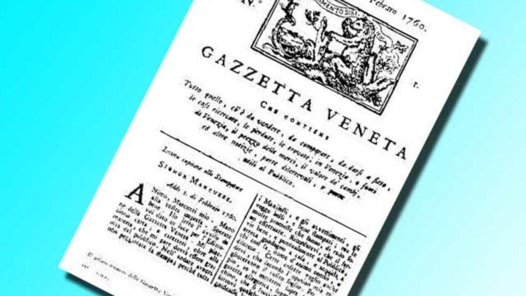 Benché si usi far risalire i primi notiziari agli acta diurna affissi nelle città dell’antica Roma, il primo vero periodico compare solo alla fine del Cinquecento, a Venezia, venduto al prezzo di una gazzetta: una moneta locale dell’epoca il cui nome finì per identificare il generico giornale periodico fino ai nostri giorni. (pp. 81-82)